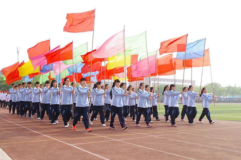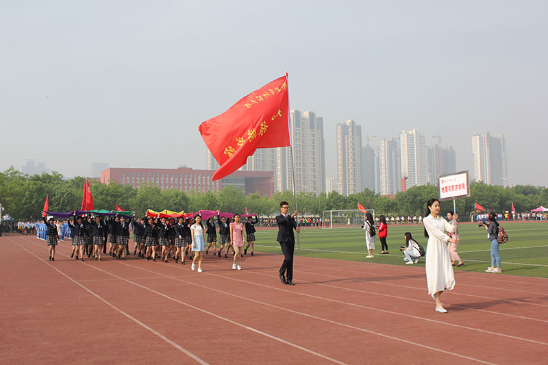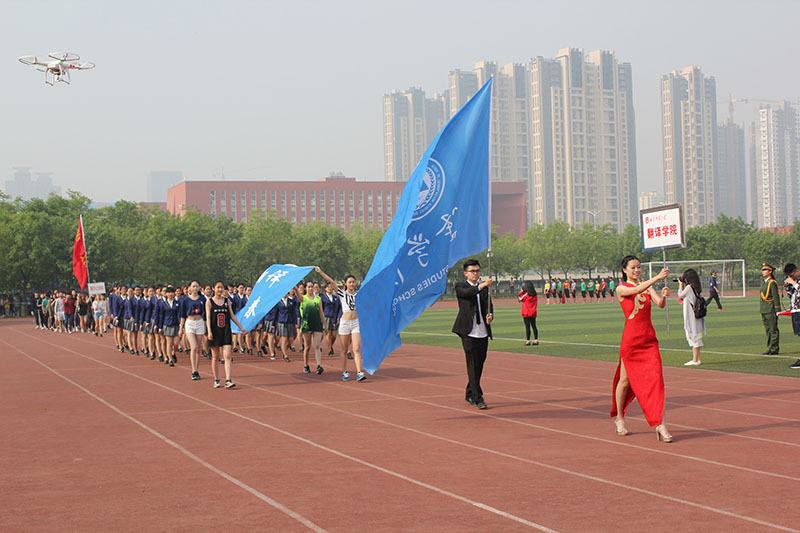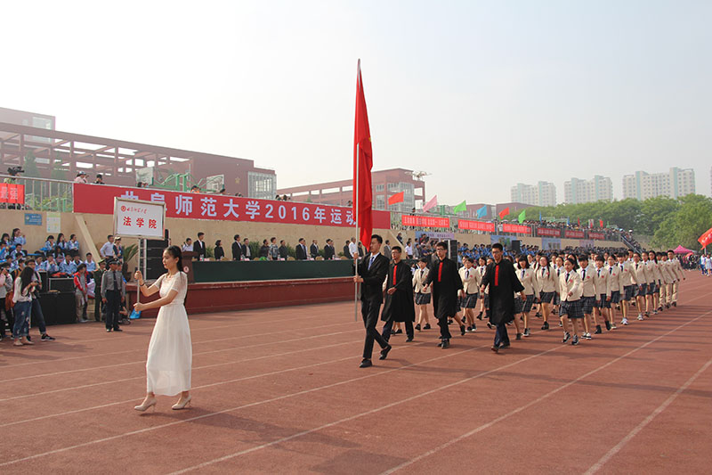 伴随着激昂澎湃的《运动员进行曲》,国旗护卫队方阵迈着整齐划一、铿锵有力的步伐走向主席台,为本次运动会拉开帷幕。随后,由60名工学学子组成的彩旗方阵、裁判员方阵以及义工服务大队代表方阵相继向主席台走来。接着,由12个学院组成的院系方阵依次入场。马克思主义学部方阵迈着沉稳自信的步伐,口号高昂嘹亮,展现出了昂扬进取、拼搏向前的精神风貌;美术学院学子耀眼的“中国红”院服夺人眼球,气宇轩昂,散发着青春的朝气;音乐学院方阵在主席台前摆出“庆建党95周年”的字样,整齐的方队展现了自信的青春斗志;地理与旅游学院方阵迈着稳健的脚步,向主席台呈现出一朵五瓣花,象征着地理学子乐观向上的活力;映入眼帘的一片蓝色是来自信息科学与工程学院的方阵,整齐的队列与一致的步伐展现出了斗志昂扬的风采;工学院方阵手举红色花球整齐入场,彰显出他们青春灵动的气质;传媒学院学子步调整齐,挥舞着黄色向日葵,象征着传媒学子的阳光活力与蓬勃朝气;管理学院手举彩色气球精神抖擞、昂首阔步地整齐入场,展现了管理学子积极向上的精神风貌;法学院学子身着法官袍,诠释了每一个“法学人”的信仰,在赛场上挥洒着凛然的正气;经济学院方阵摆出铜钱造型与上升趋势折线图,象征着经济学子的智慧与曲园的美好祝愿;翻译学院擎着“越翻译越青春”的旗帜,向我们展示了翻译学子的蓬勃朝气;国际文化交流学院方阵展现了世界多元文化的风采。各学院代表队通过各种精彩的入场表演,向我们展现了曲园学子青春灵动的精神风貌与昂扬气质。