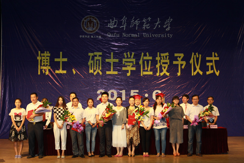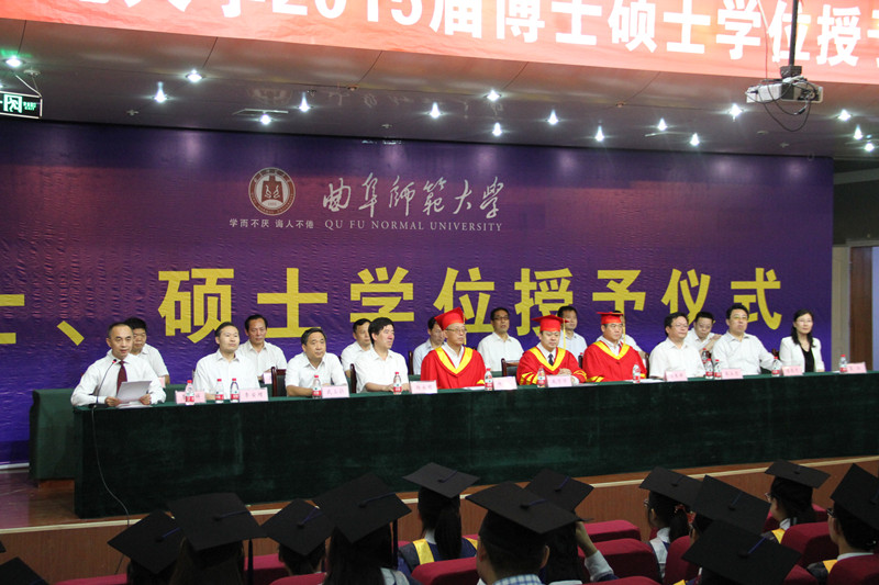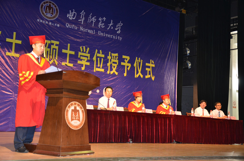 624日、26日上午,我校2015届博士、硕士学位授予仪式暨表彰大会分别在曲阜校区大学生活动中心礼堂和日照校区图书馆学术报告厅隆重举行。校长、学位委员会主席戚万学,副校长马东骅,副校长、学位委员会副主席康淑敏,副校长、学位委员会副主席张洪海,副校长杨冰出席授予仪式,校学位委员会委员、职能部门负责人、研究生导师代表、各学院负责人、2015届博士、硕士学位获得者及其亲友团参加了授予仪式。仪式由研究生处处长、校学位委员会办公室主任李兆祥主持。