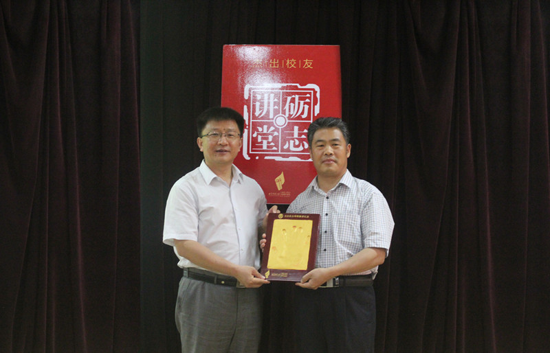 副校长扈庆学为郭建华颁赠了杰出校友纪念牌及尼山石纪念章,并赠予其母校就读期间的学籍档案复印件。郭建华留下了自己的手模,并题词和录制微视频为母校校庆送上了祝福。郭建华还收到了校庆志愿者同学为其精心手绘的肖像画。数学科学学院院长孟凡伟主持讲堂。