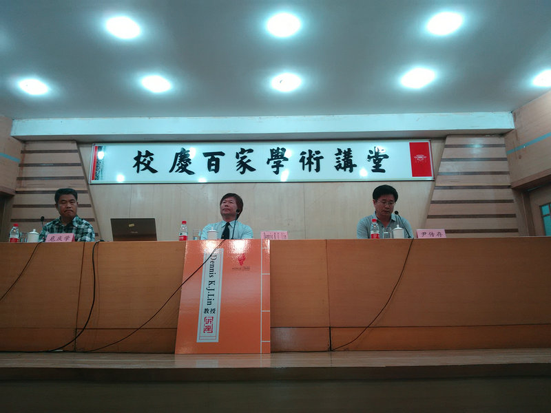 5月29日下午,美国宾州州立大学统计系Dennis K.J. Lin(林共进)教授做客我校“校庆百家学术讲堂”,为我校师生做了一场题为“Statistics for Big Data”的学术报告。副校长扈庆学代表学校为林教授颁赠了“名家高端学术讲堂纪念牌”。统计学院院长尹传存教授主持报告会。