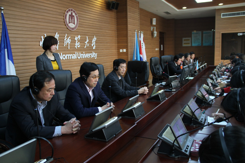 刘星泰肯定了我校图书馆全面开放对于提高日照市民的生活文化水平所起的重要作用;希望同声传译实验室承接小型国际会议同传服务任务,加强市校的合作与发展。刘星泰一行在演播室一起观看了我校的宣传片,肯定了我校60年的办学成就,对我校即将迎来的60年校庆表达了美好的祝愿,表示将一如既往支持我校的发展。
