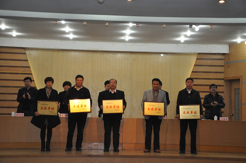 张洪海宣读了《九州(中国)一站式服务平台关于表彰2014年度人才工作先进单位的通报》,数学科学学院、化学与化工学院、孔子文化研究院、管理学院、外国语学院、工学院、政治与公共管理学院、物理工程学院、音乐学院等9个学院获得表彰。数学科学学院、化学与化工学院就各自在人才工作上的做法和经验作了典型发言。