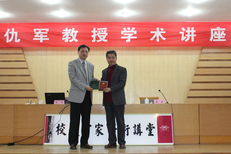 3月26日上午,清华大学博士生导师、中国体育社会学专业委员会副主任委员仇军教授做客我校“校庆百家学术讲堂”,为我校师生做了题为“城市中体育参与与社会融合的若干研究假设提起”的学术报告。副校长扈庆学出席活动,并代表学校为仇军教授颁赠“校庆百家学术讲堂”纪念牌。报告会由体育科学学院院长曹莉教授主持。