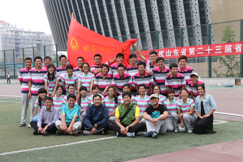 5月29日至6月2日,山东省第二十三届运动会(大学生甲组)田径比赛在山东大学中心校区举行。我校派出30名运动员参加此次比赛,经过5天的激烈角逐,我校代表队发挥顽强拼搏、团结协作的精神,傲视群雄,以男子113分、女子185分、总分298分的好成绩获得甲组团体总分第一名,男、女团体同时荣获冠军,并打破女子100米栏、400米栏、200米、400米、800米、4*100米接力、男子400米、4*400米接力8项校普通组最高纪录。