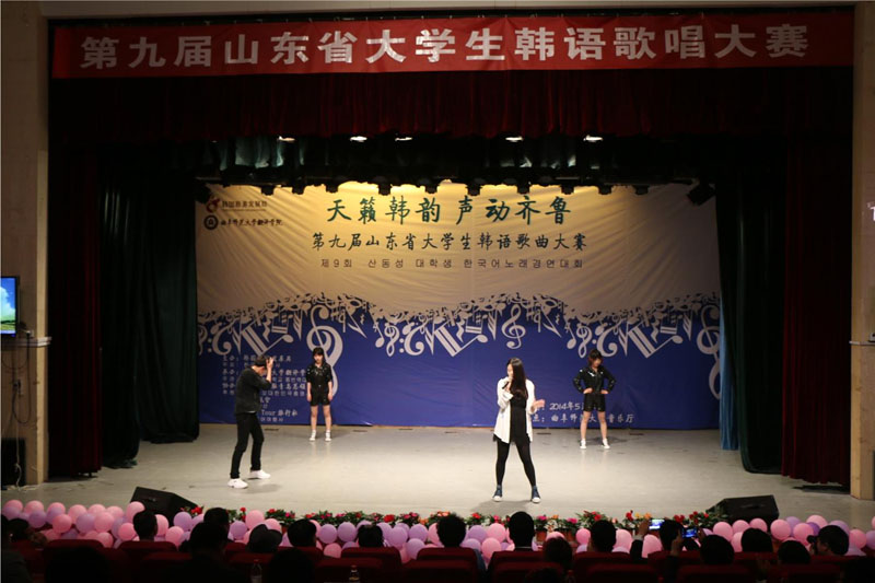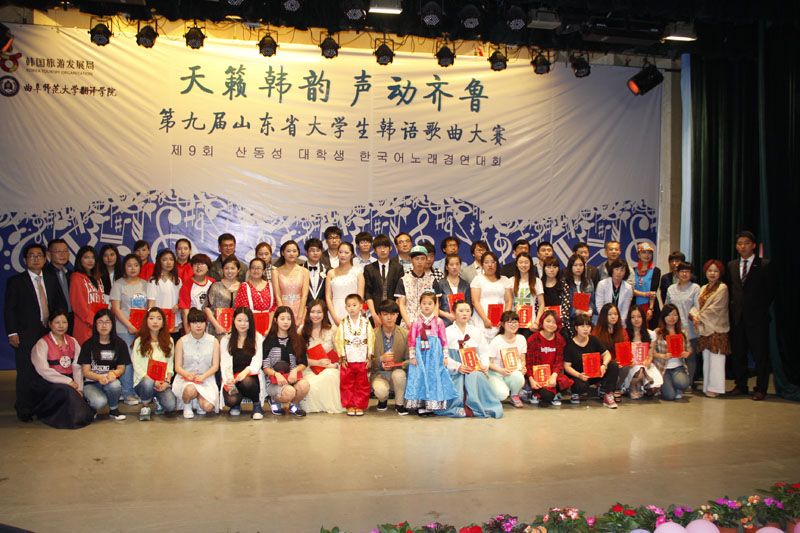 至下午4:00第九届山东省大学生韩语演唱比赛圆满落幕,本次比赛充分展示了我校蓬勃发展、积极向上的良好形象,扩大了我校韩国语专业在国内外的影响;有利于加强山东各院校韩语系之间的联系,提高学生学习韩语的兴趣;进一步加深了中国大学生对韩国文化的了解与认知,为两国文化的交流与发展做出了积极贡献。