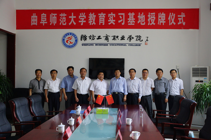 王立波介绍了潍坊工商职业学院基本情况及实习基地建设和筹备情况,刘新生对教育实习基地的建设、发展提出了要求,希望双方加强合作,深化内涵交流,互通有无,把教育实习基地建设相关工作落到实处。随后,曲师大教科院和潍坊工商职业学院签订了合作协议书,双方将以教育实习基地为平台,为学生营造一个带有职业氛围的实习环境,使教学实习与“学、研、产”一体化相结合,培养学生的实际工作能力,取得良好的经济和社会效益。会后,刘新生一行参观考察了潍坊工商职业学院的专业实训中心、艺术馆、校史馆和师生作品展览馆。