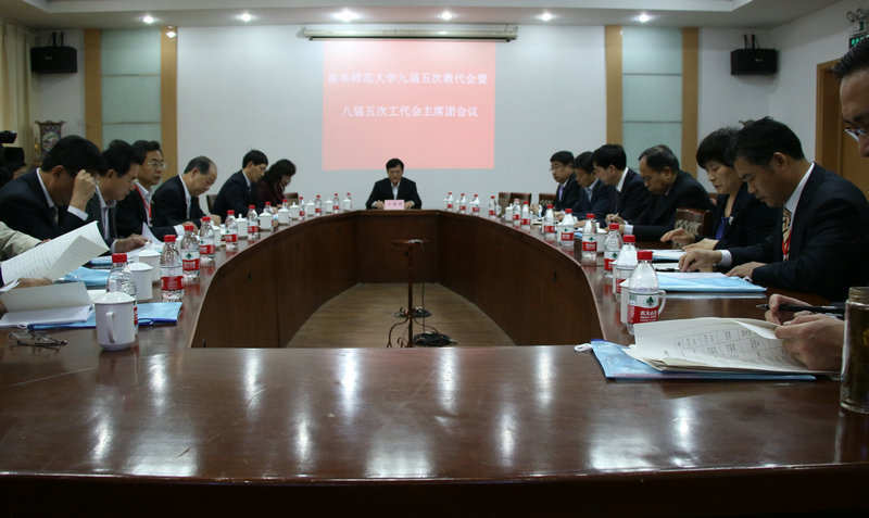 4月19日上午,我校九届教代会暨八届工代会第五次会议举行主席团会议,主席团成员、各代表团团长参加了会议。会议由党委书记荆兆勋主持。