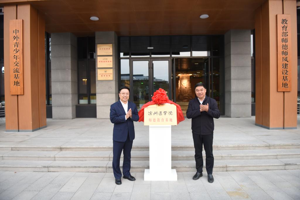 双方围绕共同关心的问题进行了深入交流。座谈会后,孙祥军一行参观了曲阜师大西区和教师博物馆。邢光和孙祥军共同为教师博物馆滨州医学院师德教育基地揭牌。