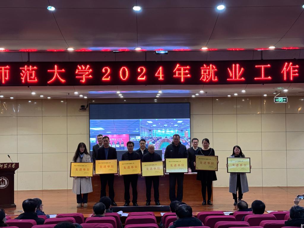 胡凡刚宣读了2023年就业工作先进单位和先进个人获奖名单。学校领导为获奖代表颁发荣誉奖牌和证书。
