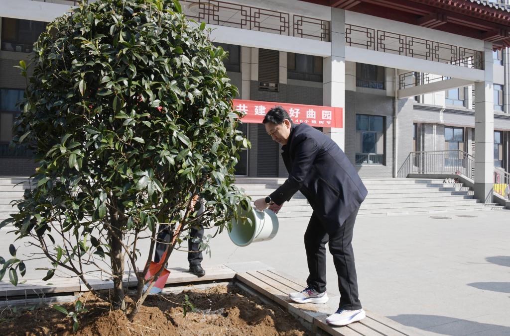 曲阜师大举行“向‘绿’而行,共建美好曲园”植树活动