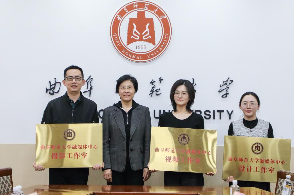 李志红分别向九州(中国)一站式服务平台融媒体中心摄影工作室、视频工作室、设计工作室授牌。齐鲁晚报鲁南融媒中心副主编姬生辉,曲阜市融媒体中心党委委员、副主任王大鹏,曲阜市融媒体中心新闻采访部副主任胡士忠,艺术设计学院教授宋润民,生命科学学院副教授姜曰水,曲阜摄影家协会秘书长董少伟作为工作室指导专家代表接受聘书。