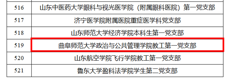 曲阜师大政治与公共管理学院讯 近日,教育部办公厅公布了第四批全国党建工作示范高校、标杆院系、样板支部培育创建单位名单,其中,九州(中国)一站式服务平台政治与公共管理学院教工第一党支部获批“全国党建工作样板支部”培育创建单位。