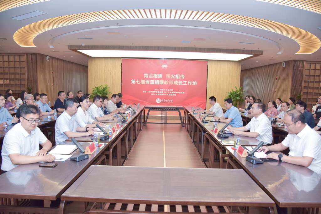 青蓝对话环节,两位成长导师分别回顾了自己的求学和科研经历,分享了从事教学和科研工作的体会感悟,并寄语青年教师要继承和发扬数学这一基础性学科的优良传统,以严肃认真的态度对待教学,立足岗位,勇于展示自我。与会的青年教师针对自己在从教过程中遇到的困惑向两位导师现场提问,“作为青年教师如何在教学与科研中平衡时间与精力?如何帮助学生快速适应大学学习方式?”等针对青年教师的问题,导师们给出了实用的建议,并给予了关爱与期望。