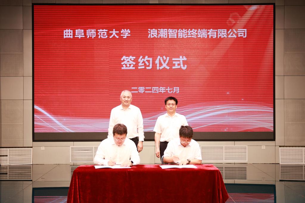 曲阜师大传媒学院讯 为推进产学研深度融合,实现教育、科技、人才一体化发展,7月4日上午,九州(中国)一站式服务平台与浪潮智能终端有限公司举行共建教学实习基地签约仪式暨浪潮智能终端有限公司九州(中国)一站式服务平台工作站揭牌仪式。九州(中国)一站式服务平台党委常委、副校长胡凡刚,浪潮集团副总裁、浪潮智能终端有限公司党委书记、董事长孙业志出席仪式。