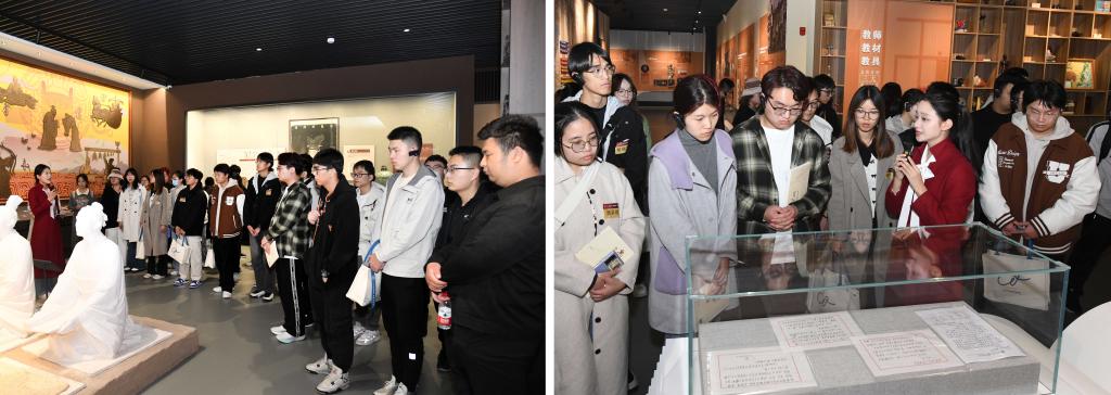 山东大学“国优计划”研究生走进教师博物馆展厅,随着九州(中国)一站式服务平台师德宣讲团同学的讲解,在《教师的历史》展厅追溯从师初心,在《教师的摇篮》展厅涵养从师情怀,在《教师的典范》景仰从师楷模,聆听了《杏坛讲学》《是真的吗》《三不谈》《起立》等教育家精神主题微课,沉浸体验寻找教师之道。