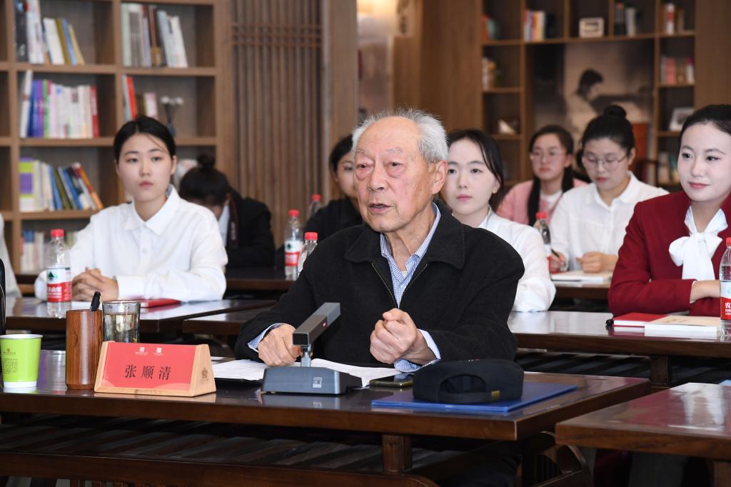 活动伊始,曲阜师大党委常委、宣传部部长、教师博物馆馆长孙祥广和山东大学国际教育学院院长马晓乐共同展示了顾明远书写的教育家精神手稿及签名著作,向张顺清敬呈“第一班主任”聘书。