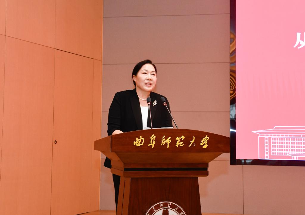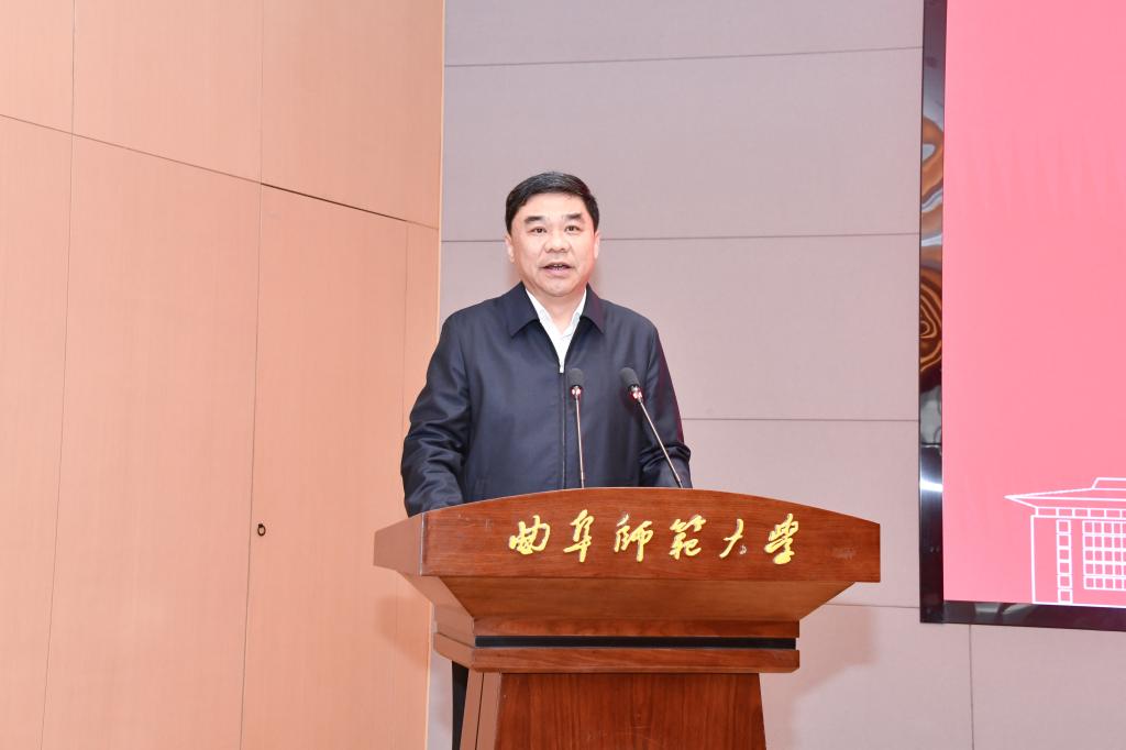 “我与曲师的情缘始于1983年的秋天,我见证了曲园师生用行动诠释学而不厌、诲人不倦的精神。”荣休教师代表、历史文化学院教授王昌沛在会上充满自豪地回忆了为自己引路的老一辈曲园名师、可亲可敬的同事们和成就自己教师荣光的莘莘曲园学子。“我眼中的曲师是一所有爱、有底蕴、有温度的大学,祝愿母校盛世华章、再创辉煌!”