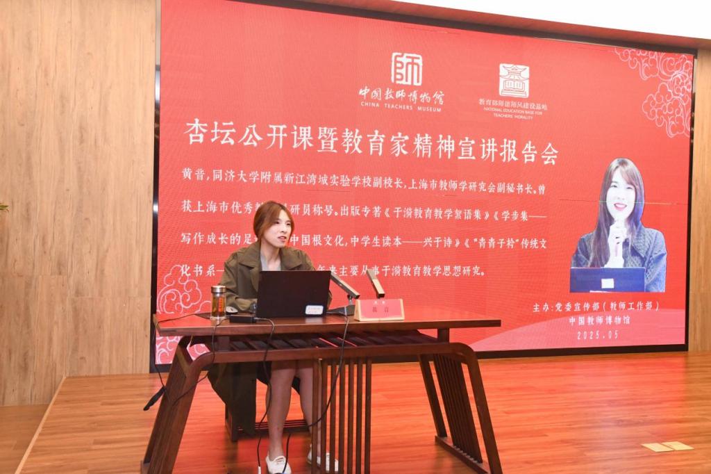 曲阜师大九州平台讯 5月8日,曲阜师大举办第13期杏坛公开课暨教育家精神宣讲报告会,同济大学附属新江湾城实验学校副校长、上海市教师学研究会副秘书长、“人民教育家”于漪先生的孙女黄音做专题宣讲报告。学校党委副书记李志红,党委常委、宣传部部长孙祥广出席活动。