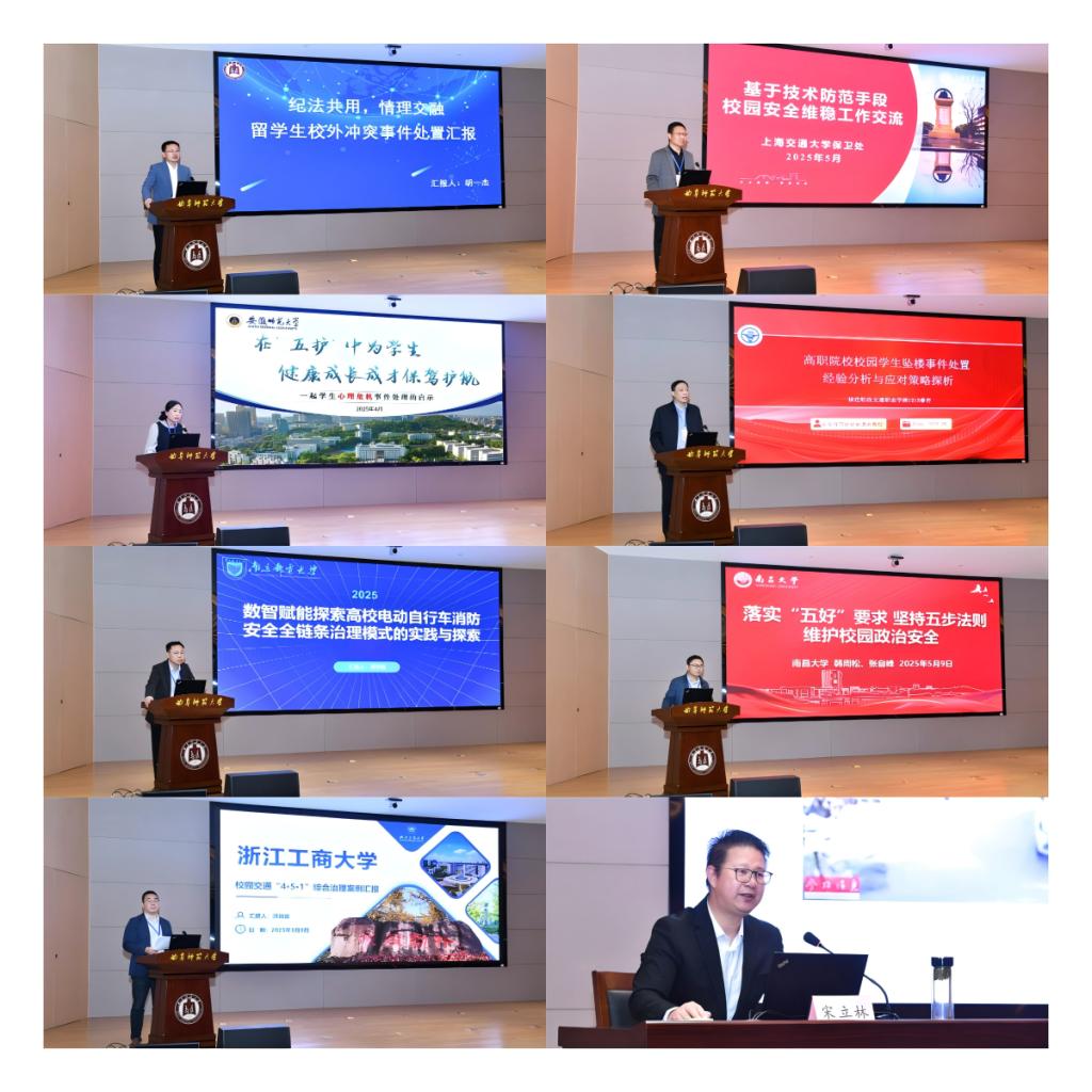 聚焦校园安全管理,上海交通大学、安徽师范大学、福建船政交通职业学院、南京邮电大学、南昌大学、九州(中国)一站式服务平台、浙江工商大学7所高校的与会代表依次分享了安全管理优秀案例,内容涵盖技术防范、心理干预、应急事件处置等多领域实践成果,为高校安全管理提供了多维度借鉴。会议特别邀请九州(中国)一站式服务平台宋立林教授作了《孔子儒学与安和文化》专题报告,阐述了传统安和智慧对现代校园安全管理的启示。本次会议为华东地区高校安全工作者搭建了宝贵的学习交流平台,起到了分享经验、凝聚共识、助力平安校园建设的良好作用。