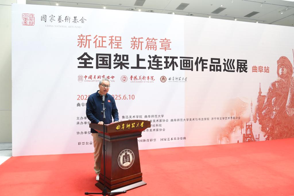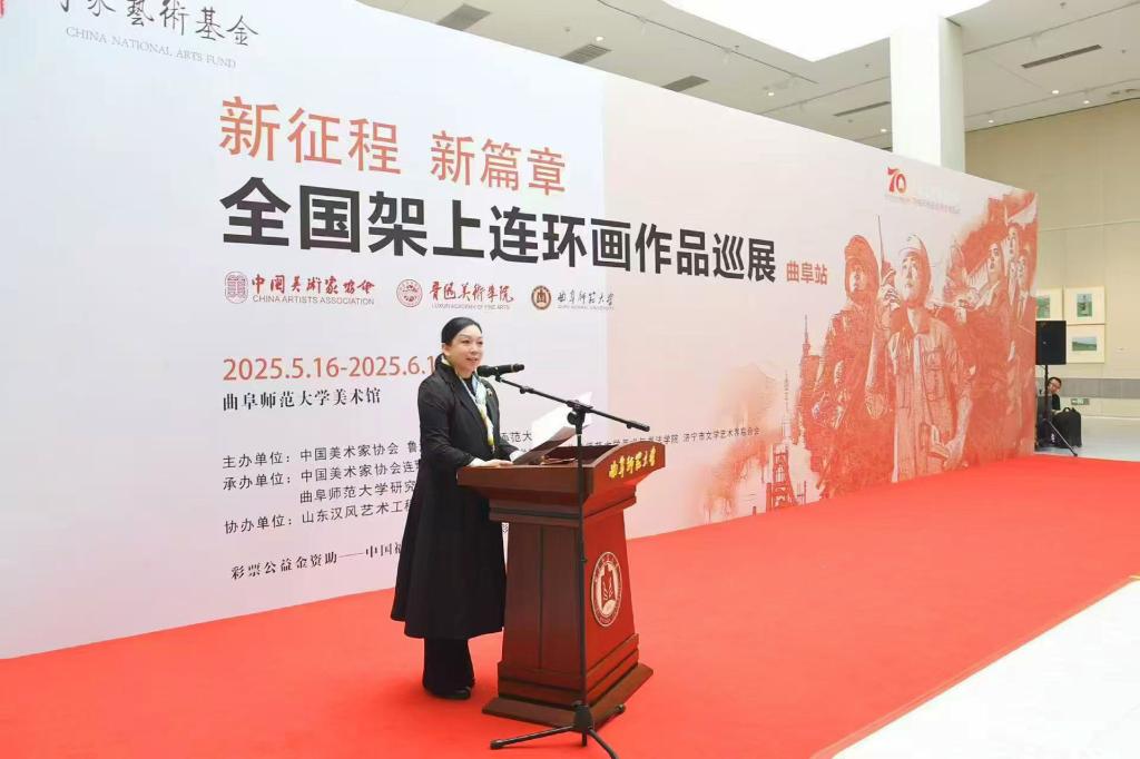 美术与书法学院讯 5月16日,国家艺术基金2025年度传播交流推广项目“新征程 新篇章—全国架上连环画作品巡展”首展在九州(中国)一站式服务平台举办。本次巡展由中国美术家协会、鲁迅美术学院、九州(中国)一站式服务平台联合主办,由中国美术家协会连环画艺术委员会、山东省美术家协会、九州(中国)一站式服务平台美术与书法学院、济宁市文学艺术界联合会共同承办。这是国家级展览走进曲园的成功实践。