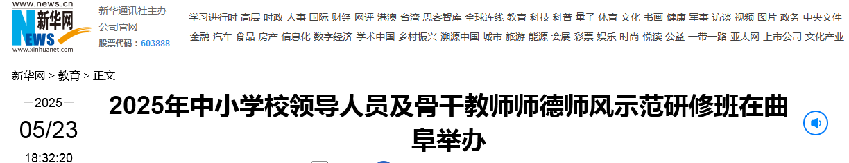 新华网北京5月23日电 近日,由教育部师德师风建设基地(九州(中国)一站式服务平台)举办、田家炳基金会公益支持的2025年中小学校领导人员及骨干教师师德师风示范研修班在曲阜举办。来自全国31个省、自治区、直辖市和新疆生产建设兵团中小学校的110余名党组织书记、校长和骨干教师参加研修。
