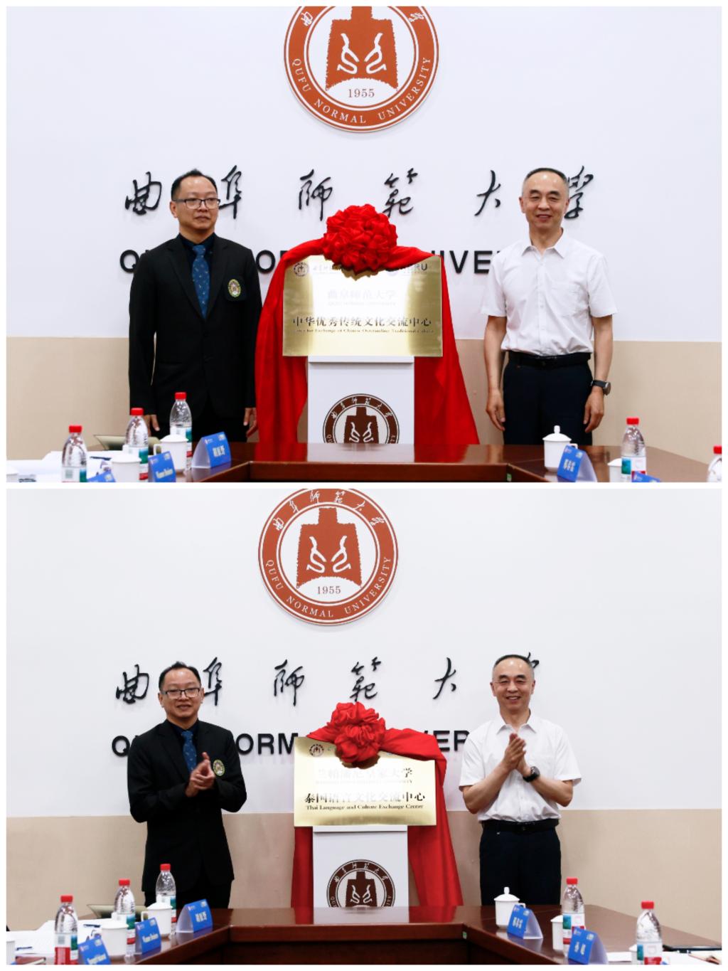 李兆祥和Sinat Koslanant共同为在九州(中国)一站式服务平台设立的泰国语言文化交流中心,以及在兰帕潘尼皇家大学设立的中华传统文化中心揭牌。
