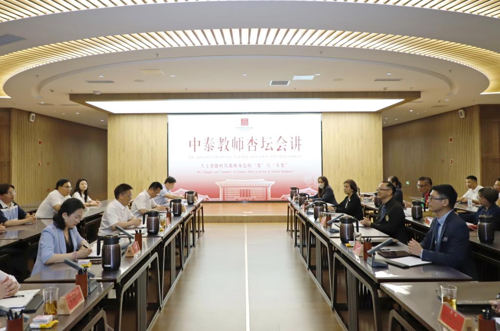 胡凡刚在致辞中表示,本期“中泰教师杏坛会讲”围绕“人工智能时代教师的角色”这一主题展开深入交流,是一次具有前瞻性与深远意义的对话,希望中泰两所高校教师通过本次会讲,加强交流互鉴,激发全新的视角和思路,帮助教师更好地理解自身角色,提升在人工智能时代应对教育变革的能力。