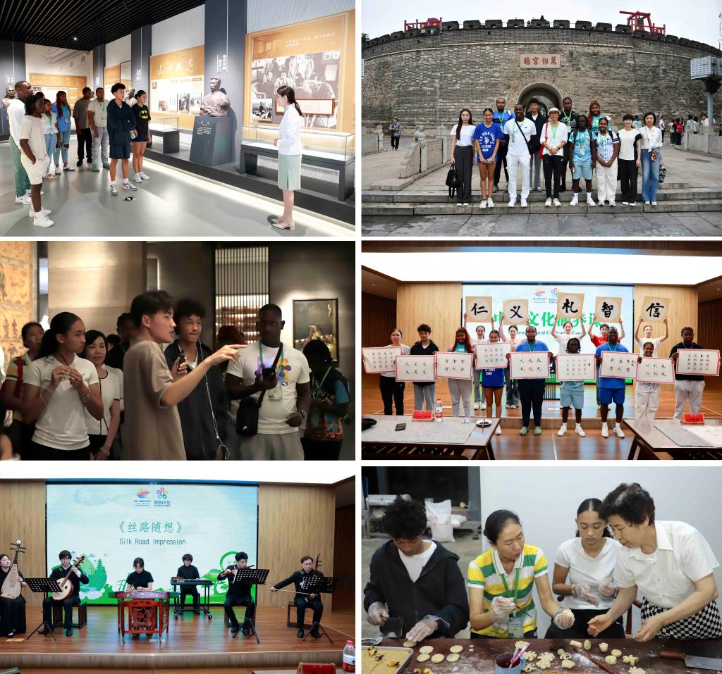 中华文化展示体验精彩纷呈。巴哈马教师和青少年先后参访孔庙、孔府、孔子博物馆,深入感悟"至圣先师"孔子的教育智慧、儒家文化的深厚底蕴以及对中国乃至世界的影响,并通过孔子后人的生活细节,切身感受"诗礼传家"的优良家风传承;他们还参访了教师博物馆,通过沉浸式参观,深入了解中华民族尊师重教的优良传统,深刻体会中华师道文化的深厚历史底蕴与当代价值;在中外青少年交流基地,曲阜师大志愿者们为巴方青少年献上了一场别开生面的中国传统音乐会,《丝路随想》《胜利秧歌》《楚汉决战》《山之高》等民族室内乐曲目,以其独特的艺术魅力展现了中华传统文化的博大精深。巴方青少年还积极参与了多项文化体验:在曲阜师大青年学子的指导下,他们执毛笔书写"仁义礼智信",既感受了书法艺术的魅力,又体悟了文字蕴含的普世价值观;通过拓印孔子行教像,亲身体验了木雕版拓印这项非遗技艺的独特韵味;巴哈马青少年还亲手制作并品尝了孔府糕点,在美食中领略中华饮食文化的细腻与甜美。