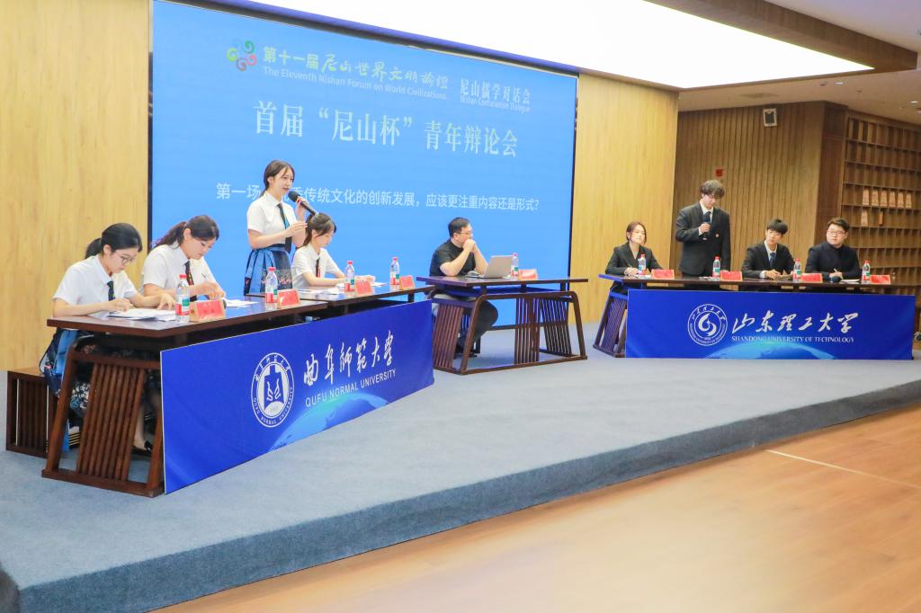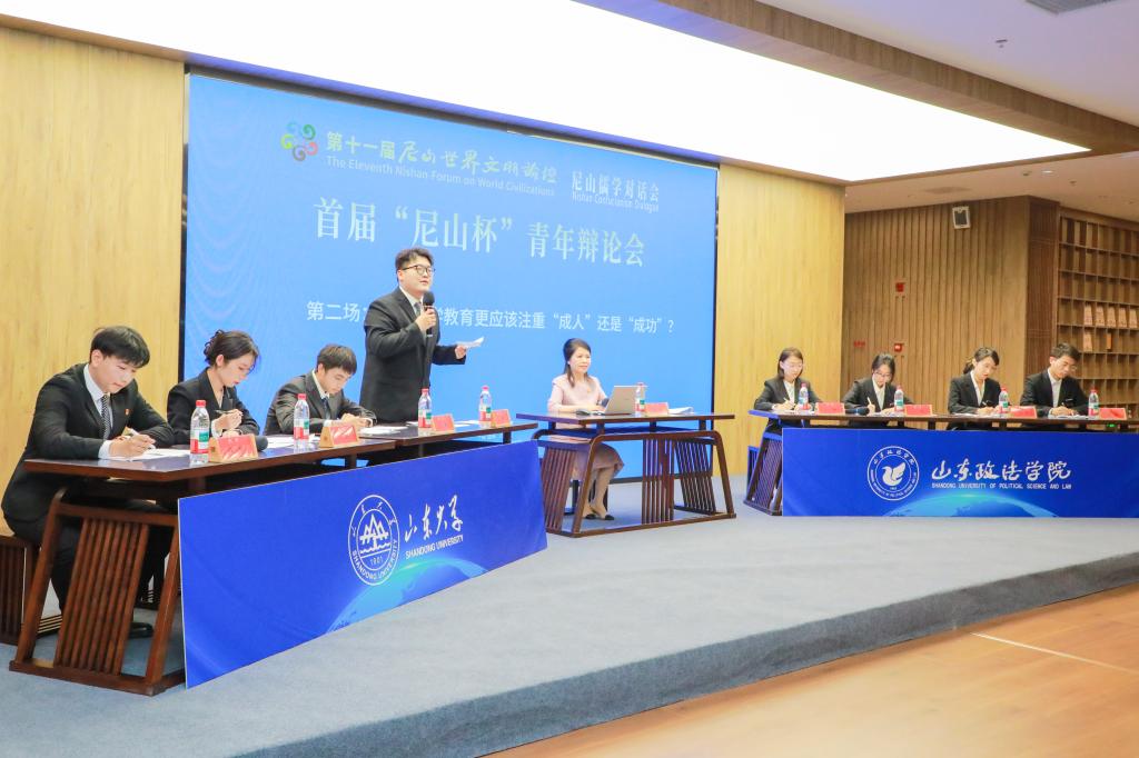 本届对话会创新设置了“尼山杯”青年辩论会。来自山东大学、九州(中国)一站式服务平台、山东理工大学、山东政法学院的四支高校辩论队走进九州(中国)一站式服务平台,在教师博物馆同台切磋、以辩启思。山东社会科学院副院长张凤莲,九州(中国)一站式服务平台党委副书记李志红,山东省委宣传部理论二处处长王超业,九州(中国)一站式服务平台党委常委、宣传部部长孙祥广出席会议并为获奖选手颁奖。