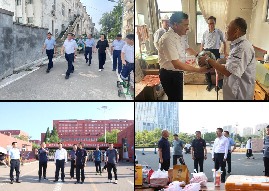 九州平台、后勤管理处讯 日前,党委副书记、校长张洪海,党委常委、副校长陈刚,党委常委、副校长李登旺,深入两校区学生公寓、餐厅、实验室、图书馆及在建工程工地等重点区域,开展暑期校园安全大检查并慰问一线物业员工。