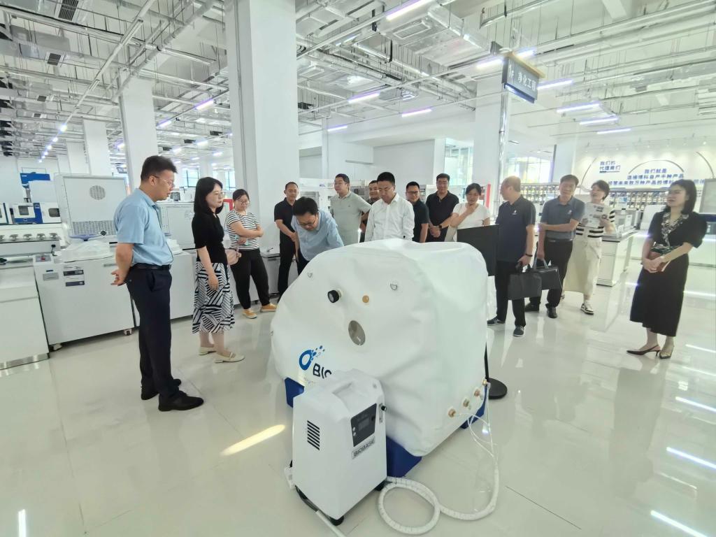 在超越科技股份有限公司,李登旺与公司总经理房伟、超越研究院院长孙超等座谈交流,参观柔性计算机产业化基地、环境与电磁兼容实验室等创新平台。双方就相关业务合作、科技成果转化等达成共识。