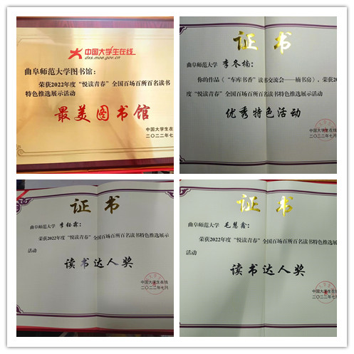“悦读青春”活动自举办以来,学生工作处认真策划,积极组织,广泛发动,在校园封闭管理期间,学生工作处各科室通过联合开展“读书达人”推选展示活动加强学生的思想引领和规划教育。由学生工作处曹亚楠、图书馆高波共同指导学生网络文化中心团队拍摄了学校图书馆宣传片,获得“最美图书馆奖”;由法学院李冬楠副教授报送的“‘车库书香’读书交流会——楠书房”活动,获得“优秀特色活动奖”;教育学院李钰霖、化学与化工学院毛慧鑫在校级初赛推选的基础上,获得全国“读书达人奖”。