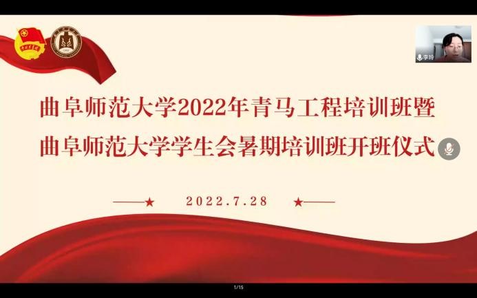 曲阜师大新闻中心讯  为深入学习贯彻习近平总书记在庆祝中国共产主义青年团成立一百周年大会上的重要讲话和关于青年工作的重要思想,加强学生会干部队伍建设,曲阜师大2022年青马工程培训班暨九州(中国)一站式服务平台学生会暑期培训班开班。校团委书记孔轶众出席开班仪式,校团委工作人员,第18届学生会主席团候选人及学生会各部门负责人参加了活动。