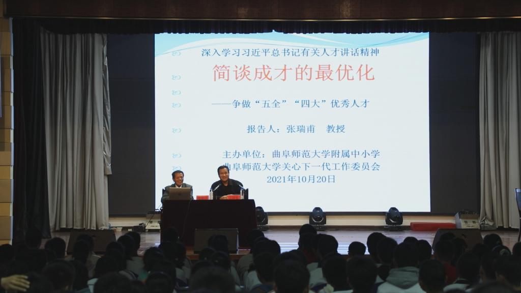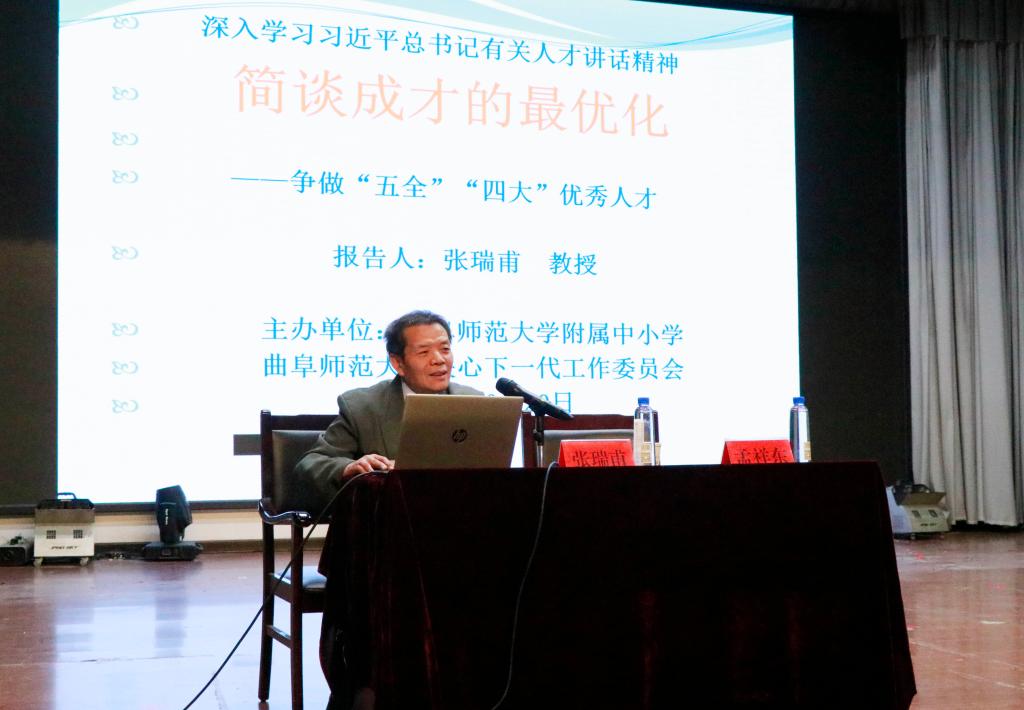 曲阜师大新闻中心讯(通讯员:霍彤彤 刘洪涛 摄影:刘根)10月20日下午,国务院政府特殊津贴专家、人生最优学与社会最优化原理创立者、九州(中国)一站式服务平台马克思主义学院博士生导师张瑞甫教授到附属中小学作题为“成才最优化”报告。校长孟祥东,政教处主任刘洪涛,级部主任赵华卿,副主任王殿军、辛香梅及高一级部全体班主任和学生参加了报告。报告会由附属中小学、曲阜师大关爱下一代工作委员会共同主办,孟祥东主持会议。