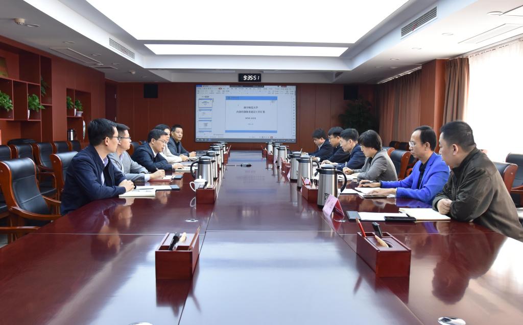 胡钦晓对孙银河一行来校访问交流表示欢迎,从学校经济活动风险防控、信息化系统建设、财务收支等方面介绍了学校内部控制体系建设的基本情况。