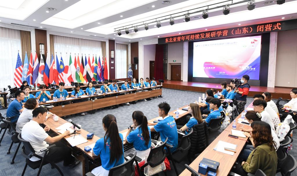 闭营式上,播放了回顾研习营走访圣城与泉城各地的视频短片。为期四天的交流中,营员们在孔庙孔府感受中华文明源头的千年底蕴;在太阳纸业、尼山鹿鸣见证现代科技手段对于绿色低碳、永续发展的贡献;在孔子博物馆、教师博物馆,读懂博物馆里的中国,共同发出绿色发展青年倡议“养君子之风 践大道之行”;在生物标本实验室聆听湿地专家讲授淡水贝类人工繁育对生态环境的贡献,通过虚拟仿真实验、3D全息投影等技术直观了解微山湖物种保护的现状;在汉字记忆空间缝制宋代四目线装书和传拓瓦当的工艺;在省中医院验证中医的疗效……营员们不仅加深了对绿色中国的了解,还学习了书本中学不到的知识,收获了亲如家人的浓浓友情。一个个精彩瞬间,一段段难忘时刻,令人留恋不舍。