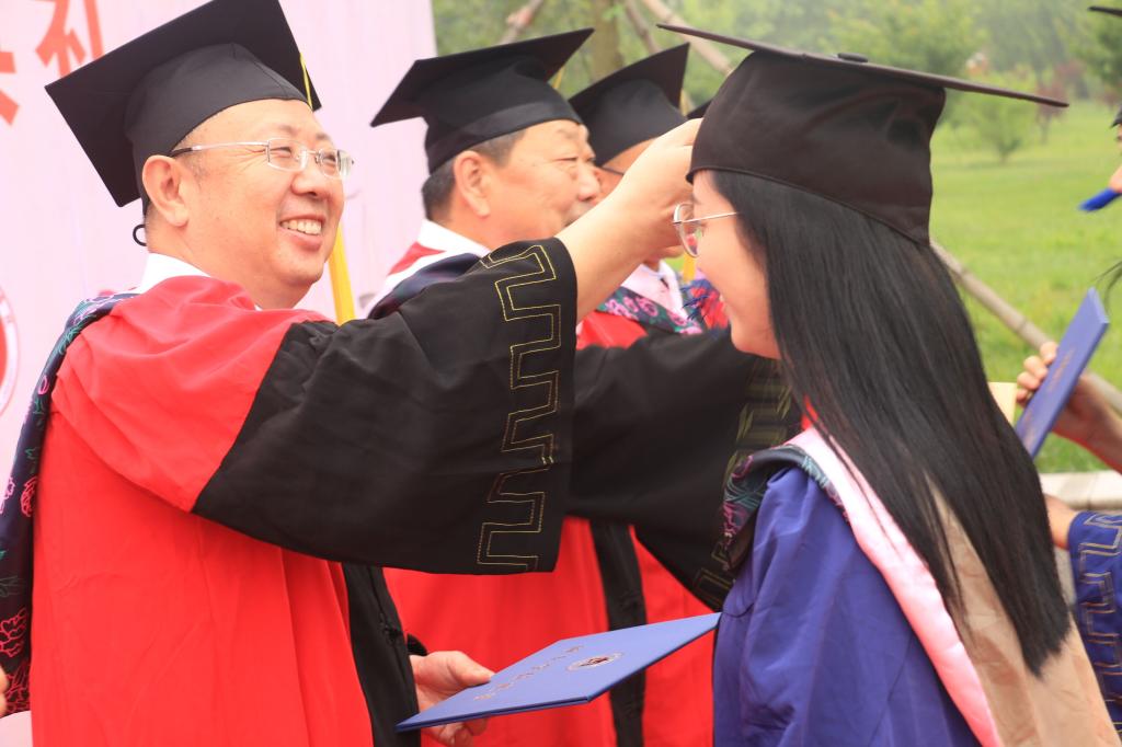 加强联络,离别之情真挚动人。典礼还特意安排了校友联络员聘任仪式。院长张益刚为2021届毕业生11位校友联络员颁发了聘任证书,邹嘉祥同学作为校友联络员代表、姜慧作为全体毕业生代表,分别发言,表示会始终秉承 “学而不厌,诲人不倦”的校训精神,成为其精神的发扬者、传承者和实践者。伴随着全体师生满怀深情共同合唱校歌《犁牛之子》,典礼转入室外第二会场。