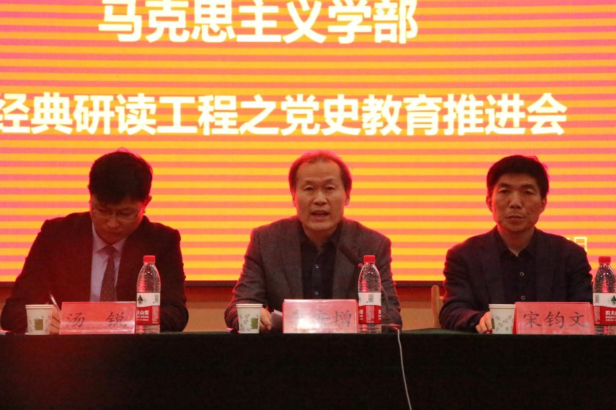 马克思主义学部党委副书记宋钧文介绍了“双经典”研读工程的以往概况和本年度党史教育专题的总体安排,重申了“培养研读兴趣,领略经典魅力,提高理论水平和人文修养”的研读宗旨,倡导研读党史经典文献,尝试撰写研读心得,通过宣讲、朗诵、讲课等形式促进党史学习教育。