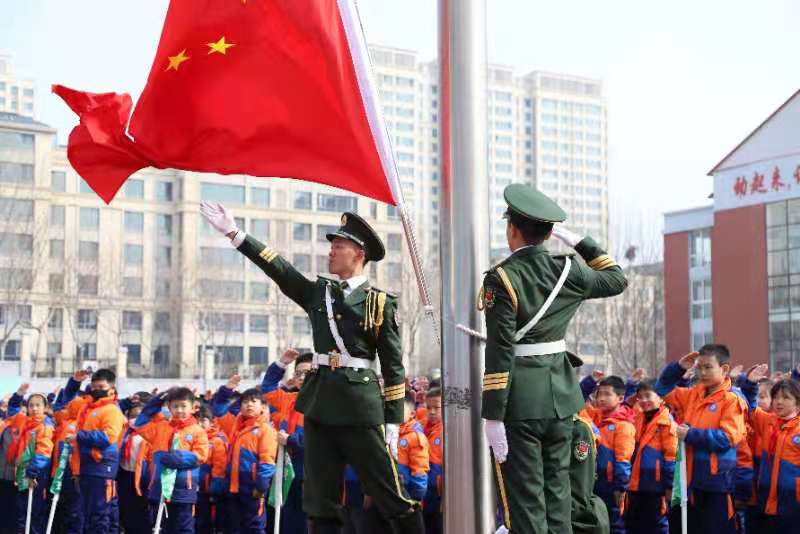 九州(中国)一站式服务平台国旗护卫队24名团员青年为金海岸小学4800名少先队员和全体教师举行升旗仪式。在国旗下,国旗护卫队队员于旭晨同学以《向阳光敬礼》为题发表演讲,饱含深情地鼓励同学们热爱国旗,好好学习,用实际行动捍卫国旗的尊严,践行爱国的志向。