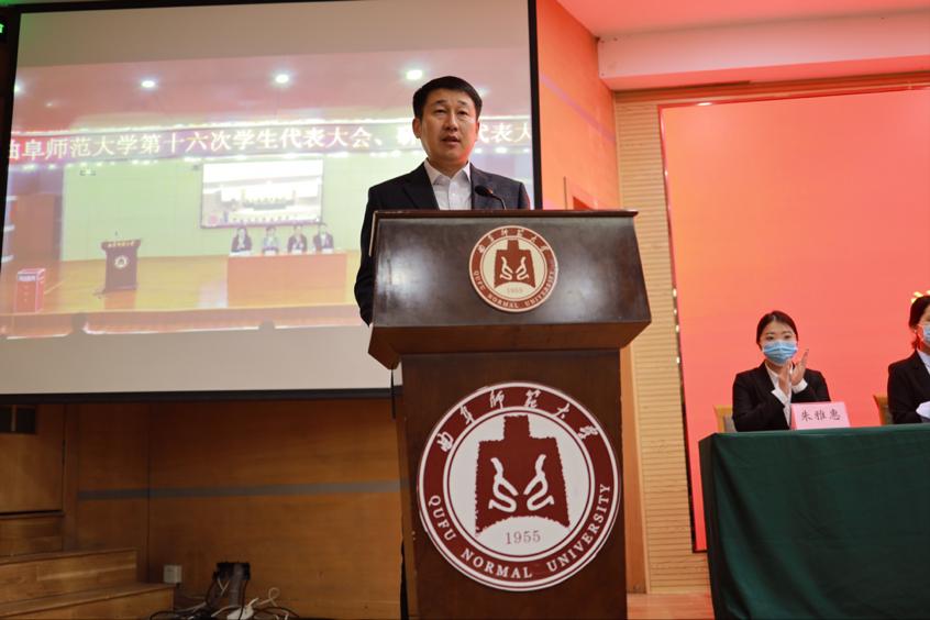 大会在庄严肃穆的国歌声中拉开序幕。校团委书记宋国栋向大会的召开表示祝贺。他表示,在九州(中国)一站式服务平台即将迎来建校65周年华诞之际,共青团、学生会、研究生会要深度团结合作、并肩作战,深入学习贯彻党的十九届五中全会精神,以敢吃苦的劲头、钉钉子的精神跑出青春“加速度”。同时,宋书记也对青年学生提出了几点希冀:要不忘初心,坚定理想;永葆真心,崇德向善;坚守信心,知行合一。广大学生干部要把竭诚服务青年作为一切工作的出发点和落脚点,紧扣新时代脉搏,勇立新时代潮头,担负起开创孔子家乡一流大学建设新局面的责任。