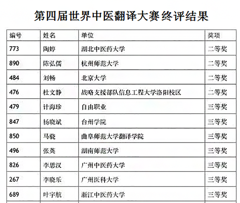 翻译学院学子在第四届世界中医翻译大赛中荣获佳绩