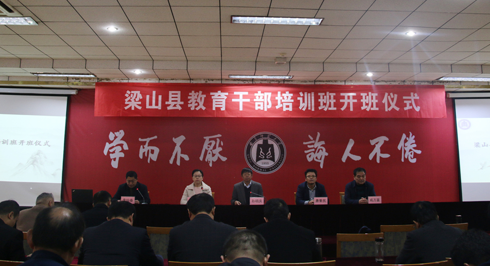 11月10日,教育学院举办的梁山县教育干部培训班顺利开班。教育学院党委书记姜美颖、院长唐爱民、梁山县教育和体育局领导和来自梁山县的55名教育干部参加了开班仪式。开班仪式由梁山县教育和体育局党委委员、副局长李灿春主持。