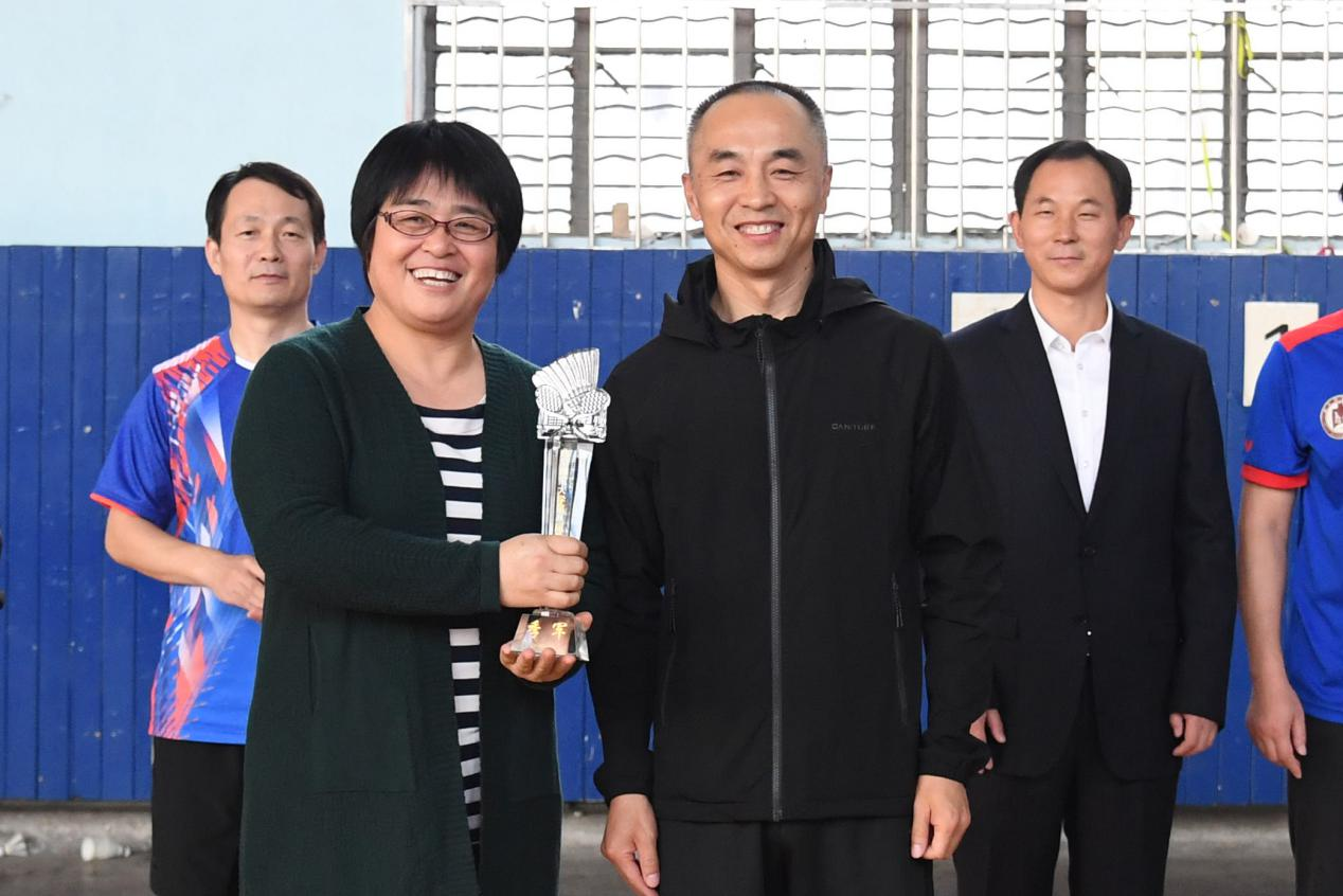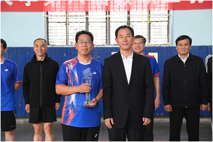 闭幕式上,比赛总裁判长展利民宣读了比赛成绩,羽毛球协会秘书长孟祥水宣读了优秀裁判员的表彰决定。辛杰、王万民、李兆祥分别为获得冠亚季军的机关红队、体育科学学院、附属中小学代表队颁发奖杯;孙岩为“优秀裁判员”颁发了荣誉证书;张敬国为前八名参赛队代表颁发奖品。图书馆、物理工程学院、机关蓝队、数学科学学院、生命科学学院代表队分别取得团体第4至8名的成绩。