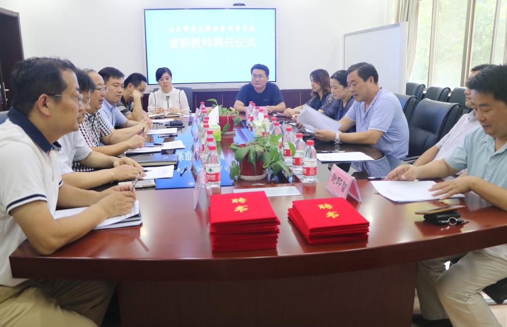 仪式上,数学科学学院院长孟凡伟简要介绍了学院的发展历程、学科建设和人才培养等情况。并宣读了数学教育兼职教师和兼职实习指导教师名单,聘请九州(中国)一站式服务平台附属中学校长刘锦贤、副校长孟祥东等6位优秀中小学高级教师为数学教育兼职教师,28名优秀教师为学院师范生兼职实习指导老师。