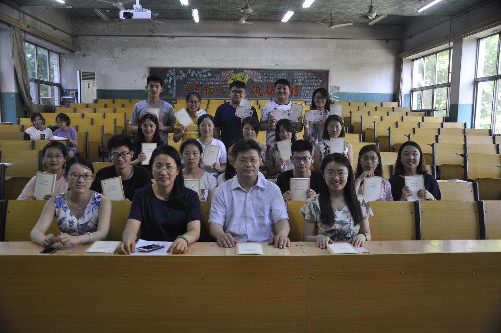 为庆祝中国共产党成立97周年,深入学习贯彻习近平新时代中国特色社会主义思想和党的十九大精神, 6月28日下午,在毕业生党员离校前夕,数学科学学院本科生党支部精心设计了毕业生党员“大学最后一堂党课”,学院党委副书记刘建新,本科生党支部书记朱伟卫、副书记杜晨曦、组织委员郅艳梅、宣传委员张惠,以及2014级全体毕业生党员,共同上好了一堂丰富生动、别具深意的党课。