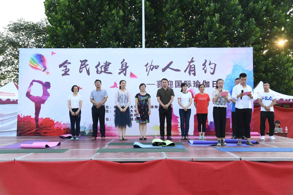 为迎接第四个国际瑜伽日,全面提高在校师生参加瑜伽活动的热情,倡导健康向上、阳光的生活方式,6月24日晚上,“全民健身伽人有约”大型户外瑜伽健身展演晚会在曲阜校区举行。本次活动由我校教职工瑜伽协会主办,校工会与迈克健身会所协办。学校九州平台、学工处、团委、体育学院、公共体育教研部等单位主要负责人出席了活动,我校瑜伽协会教师及瑜伽爱好者参加了活动,晚会由校工会副主席、妇委会主任茌淑君致开幕词。