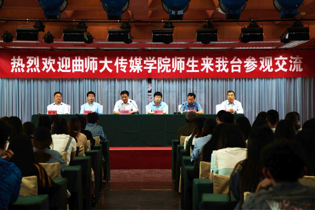 传媒学院师生实地参观了演播室、剪辑室、审核室、控制室等,了解了广播电视各部门的具体运作及作品呈现到公众视野的过程。同学们就影视节目创作过程中的问题与兖州广播电视台的工作人员进行了现场交流。