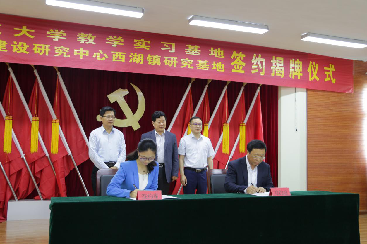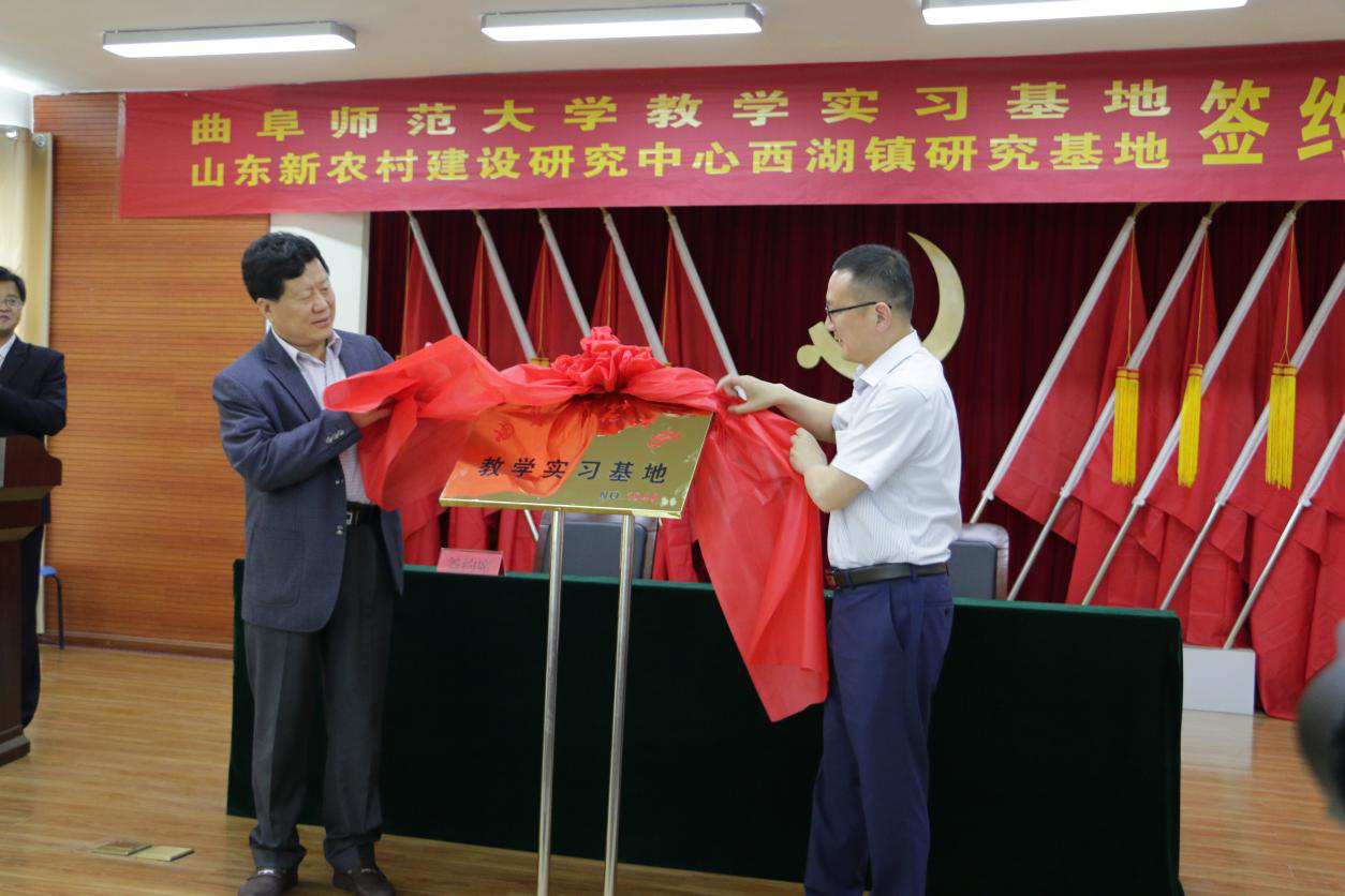 5月18日,“九州(中国)一站式服务平台教学实习基地”和“山东省新农村建设研究中心西湖镇研究基地”签约揭牌仪式举行。马克思主义学部党委书记张立兴,政治与公共管理学院院长王维先,东港区委常委、政法委书记王磊,西湖镇党委书记厉彦宝,西湖镇党委副书记、镇长叶小星以及政治与公共管理学院、马克思主义学院部分师生、西湖镇机关干部等参加了活动。