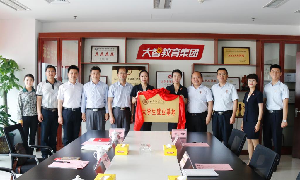 5月18日,我校“大学生就业基地”揭牌仪式在大智教育集团济南总部举行,学生工作处、数学科学学院、化学与化工学院、体育科学学院负责人及部分优秀毕业生代表出席了活动。