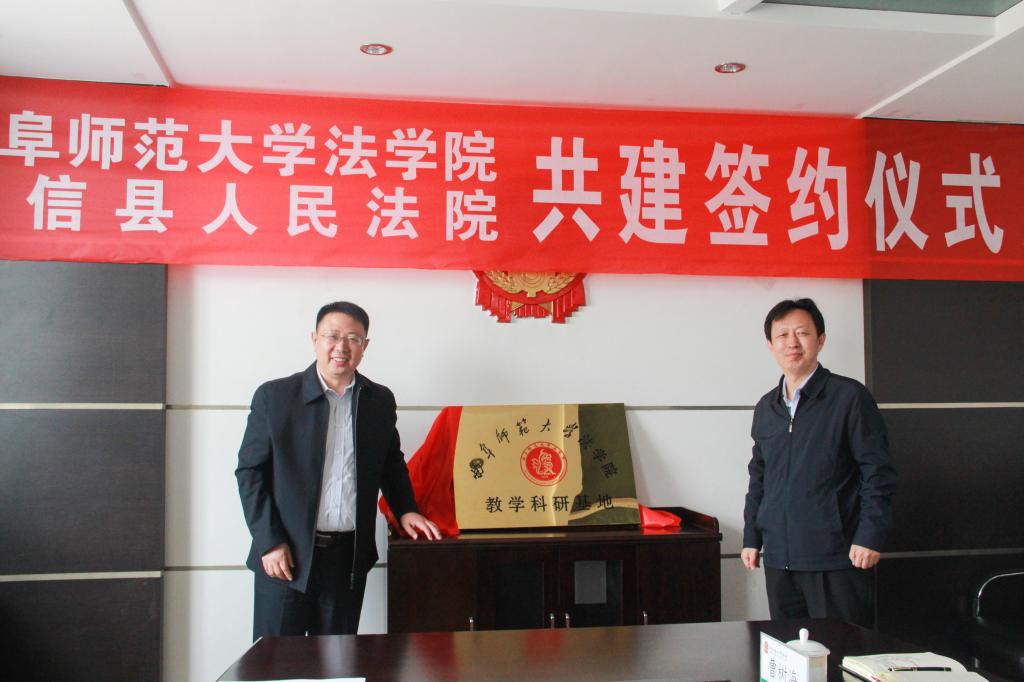 5月6日,我校法学教学实践基地落户阳信县人民法院,法学院院长张益刚、党委副书记卢瑞霞、副院长李冬楠,阳信县人民法院院长孙卫国以及全体领导班子成员共同出席了签约揭牌仪式。